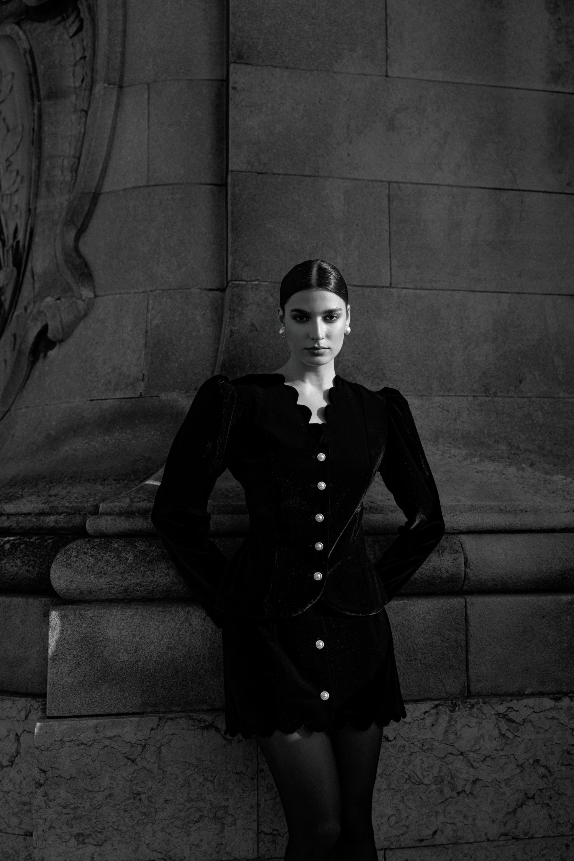 Our Amelie Suit embodies Parisian elegance and modern femininity. The jacket is made of premium velvet in an exquisite A-line silhouette with softly rounded sleeves and accentuated shoulders that emphasise the slim waist and fitted cut.