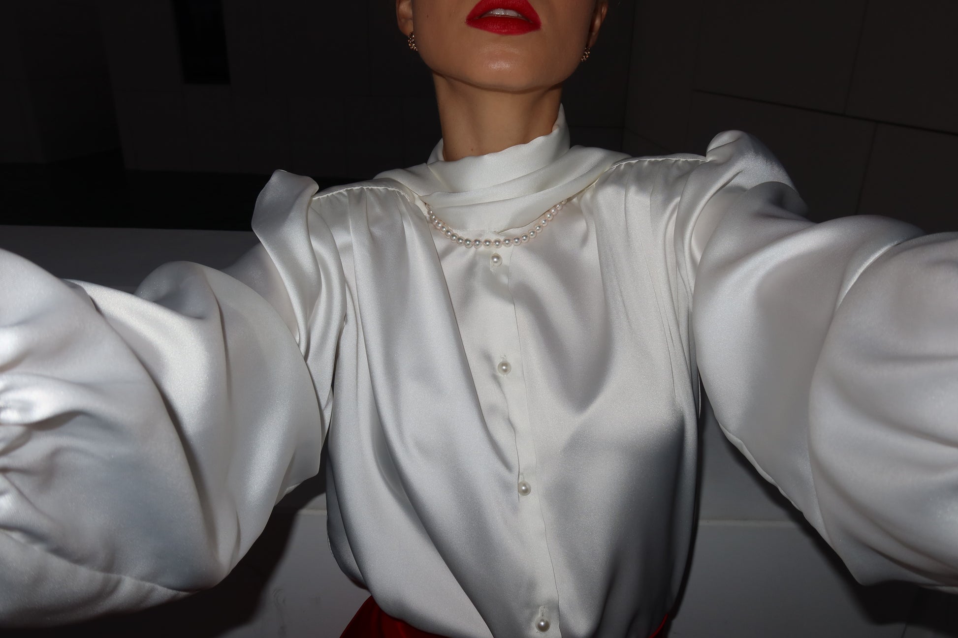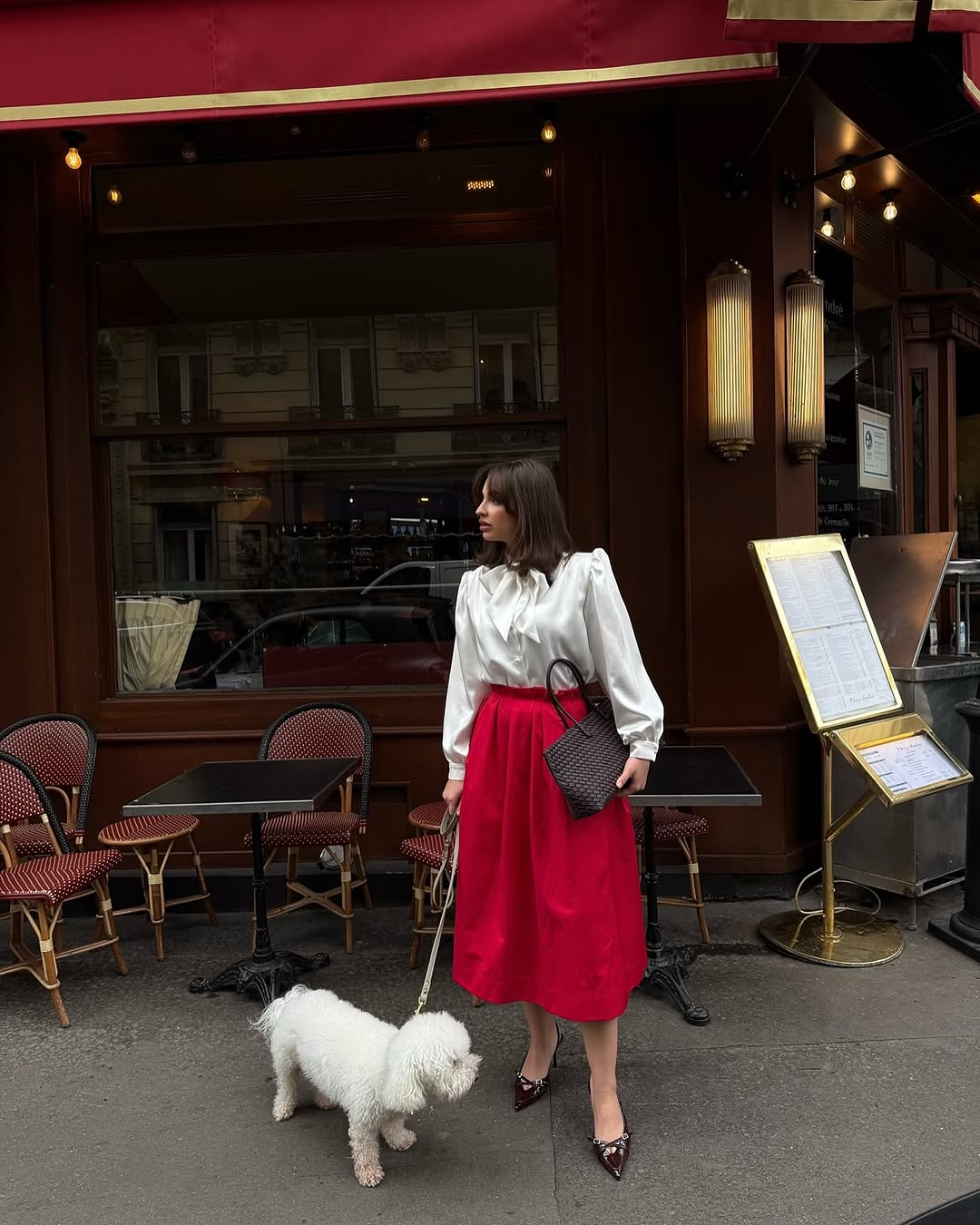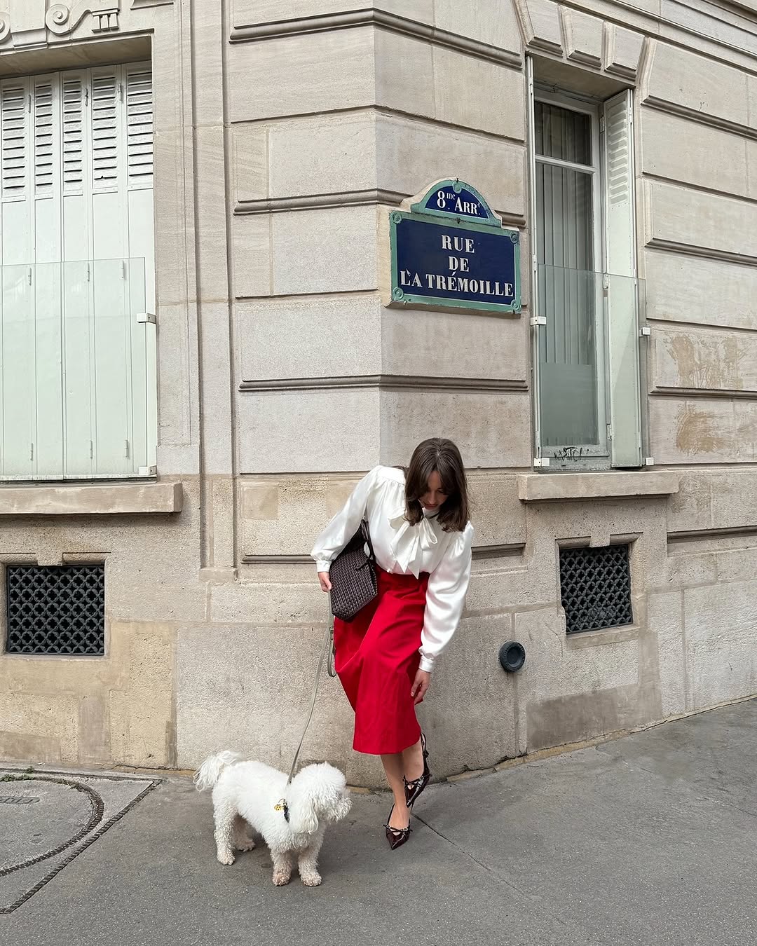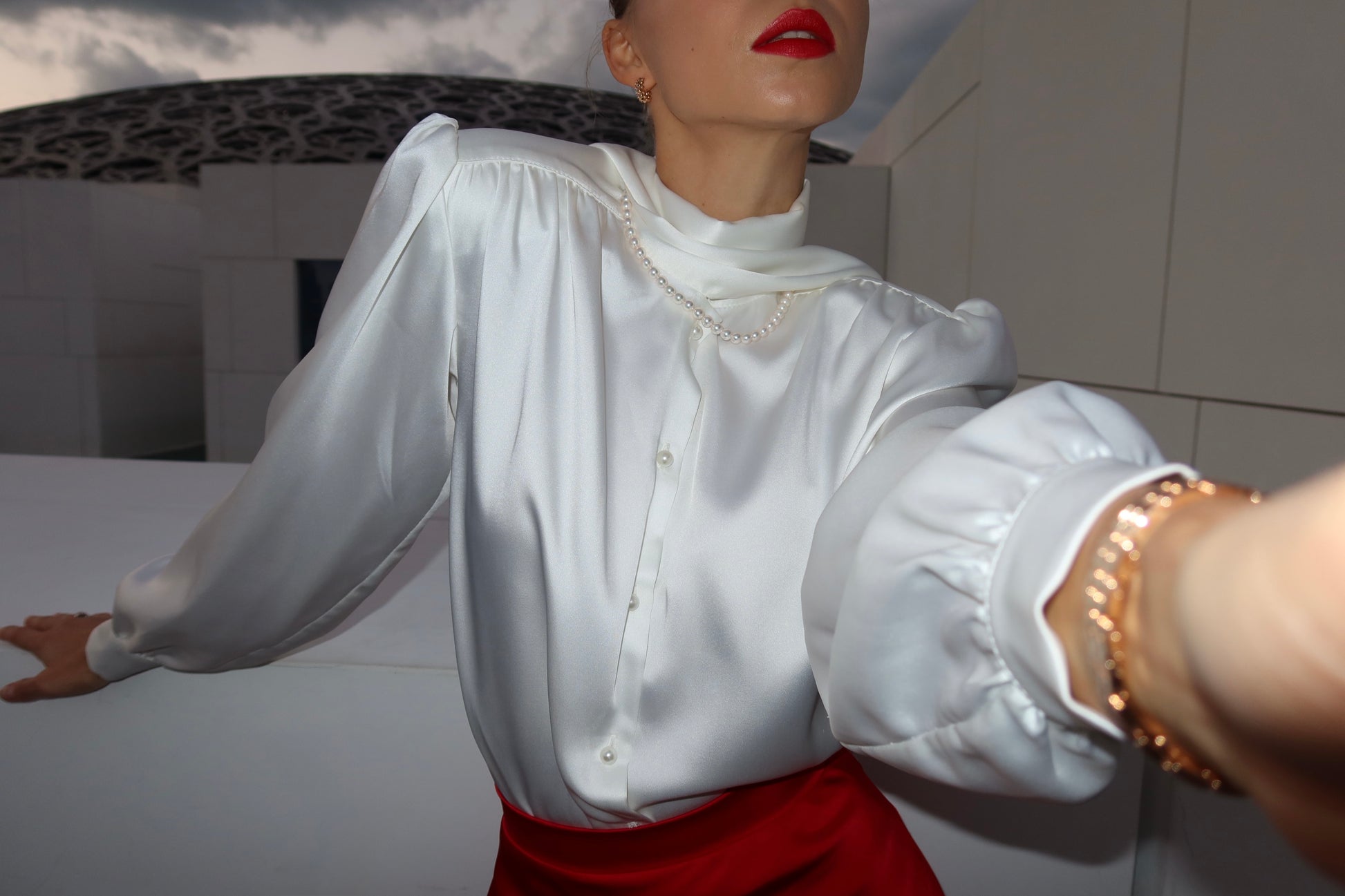 The main highlight of which is the scarf element, which can be beautifully tied in a bow or left untied as a light thin scarf, which is also a trend of this season.