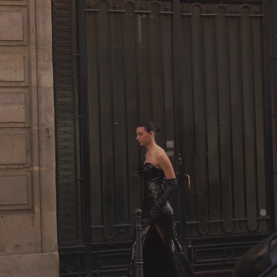 La Rose Noire is a luxurious black maxi dress that embodies boldness, grace and sophistication. Crafted from Italian premium sequins on a stretch base, the dress fits perfectly, providing comfort and a flawless fit.