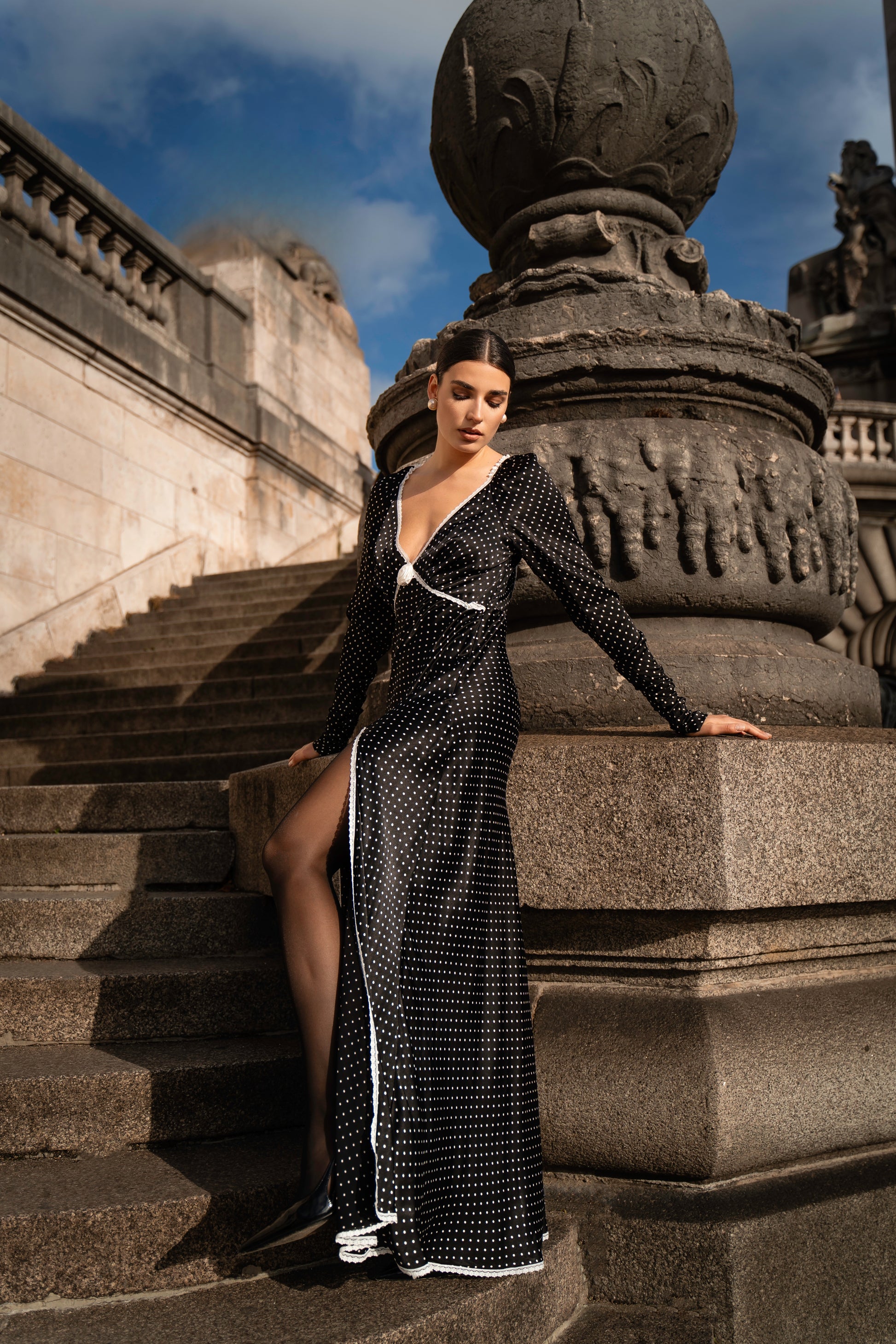 A high slit along the leg enhances movement and adds a subtle, sophisticated sensuality.