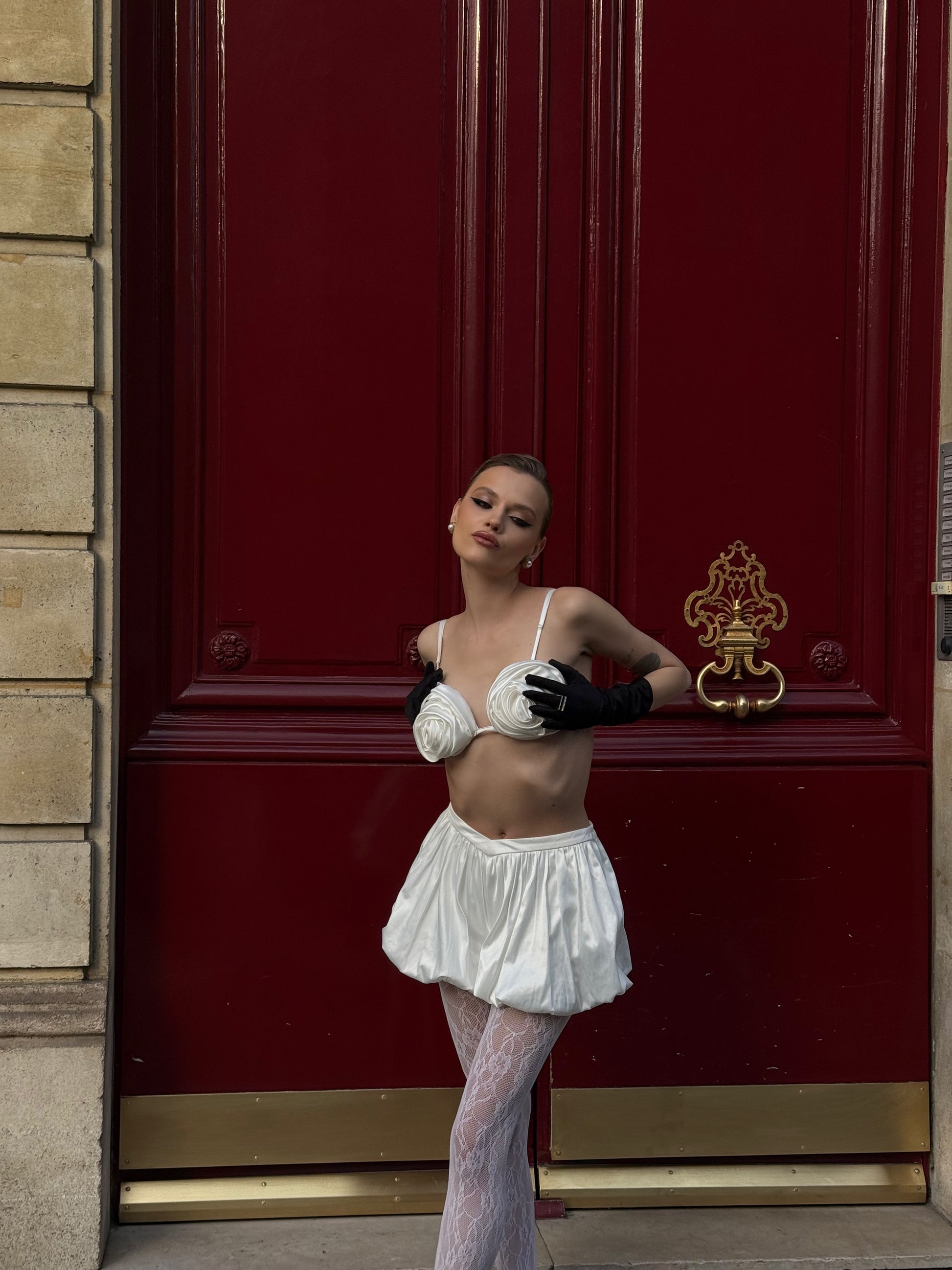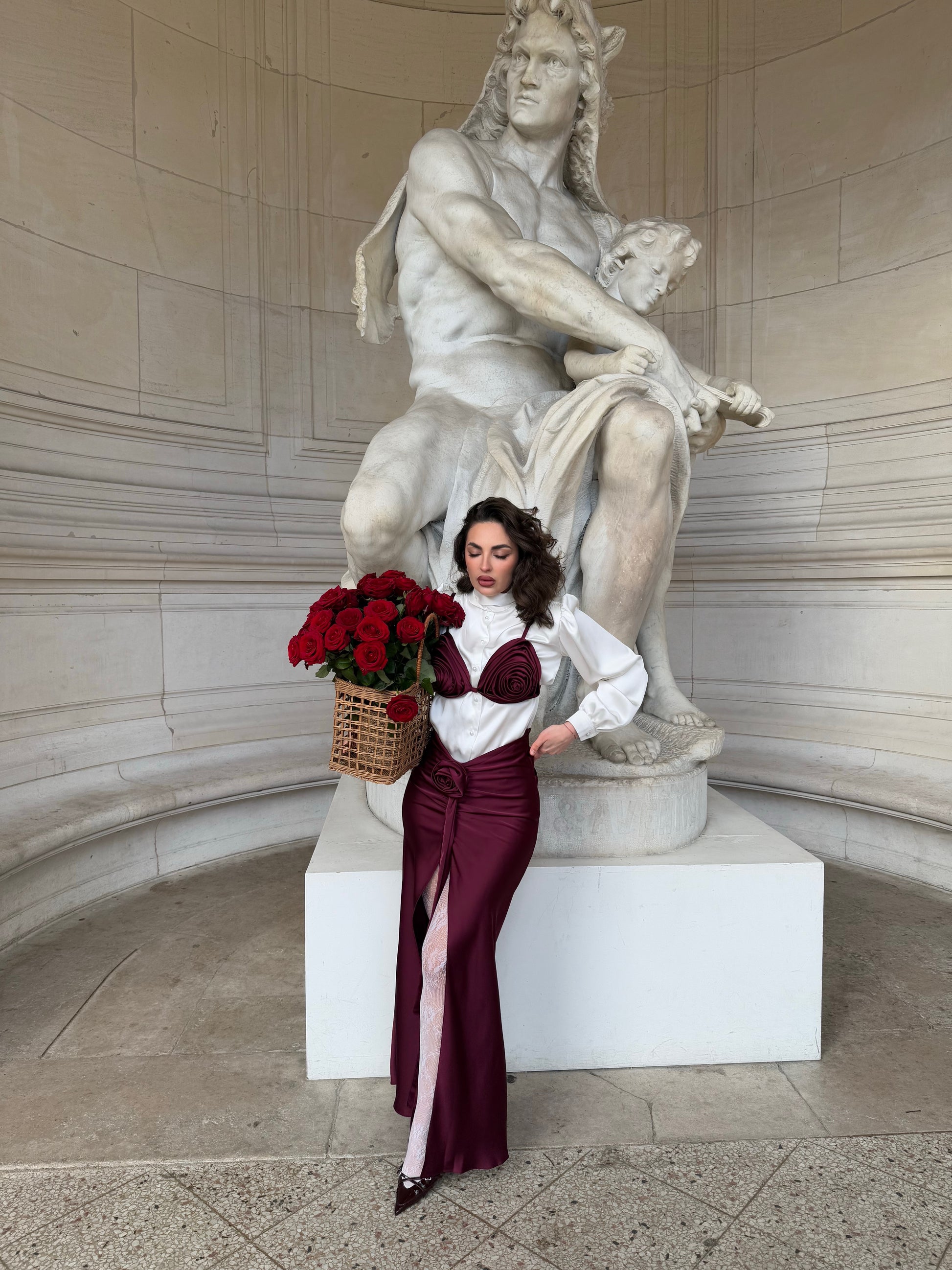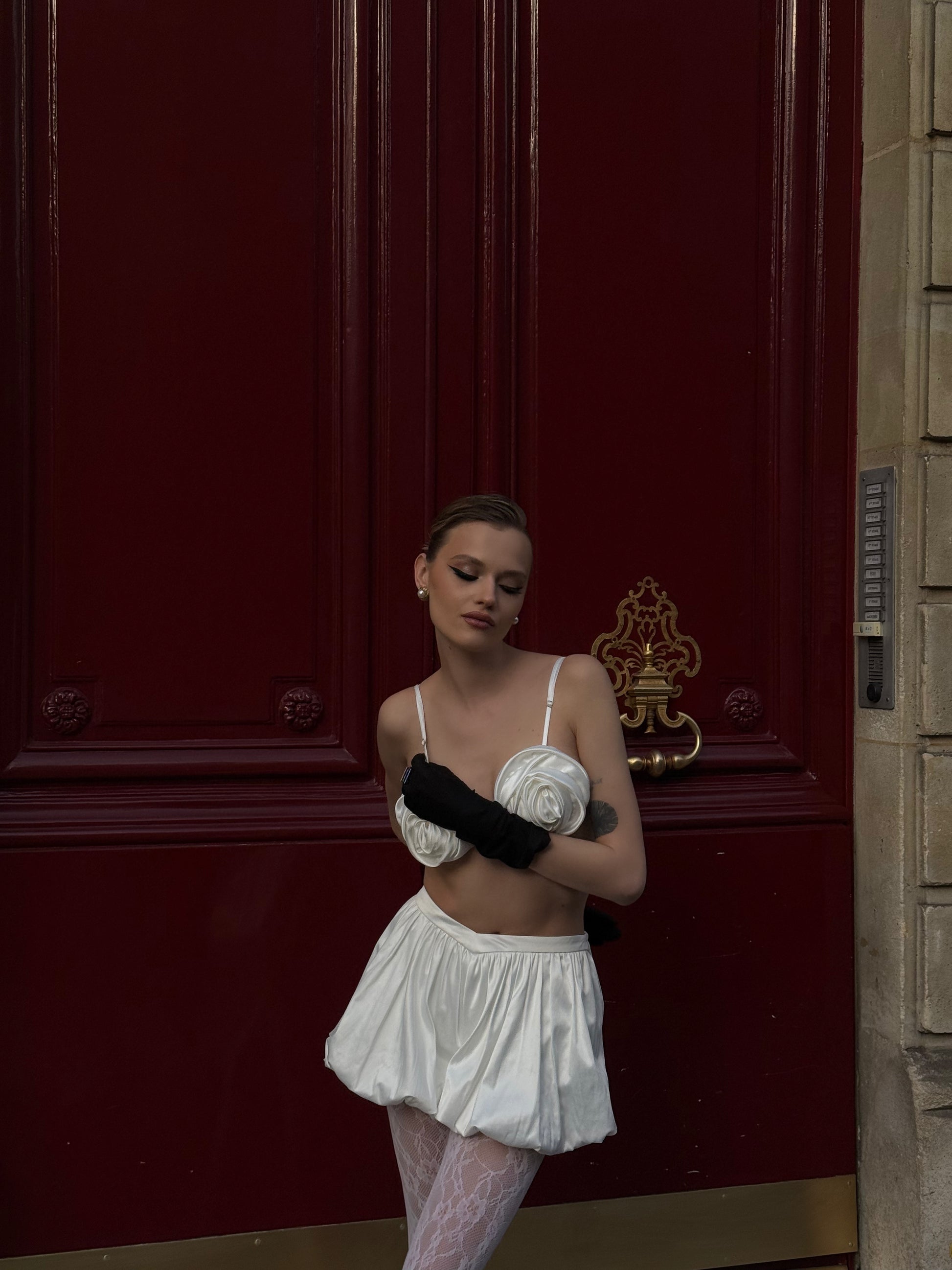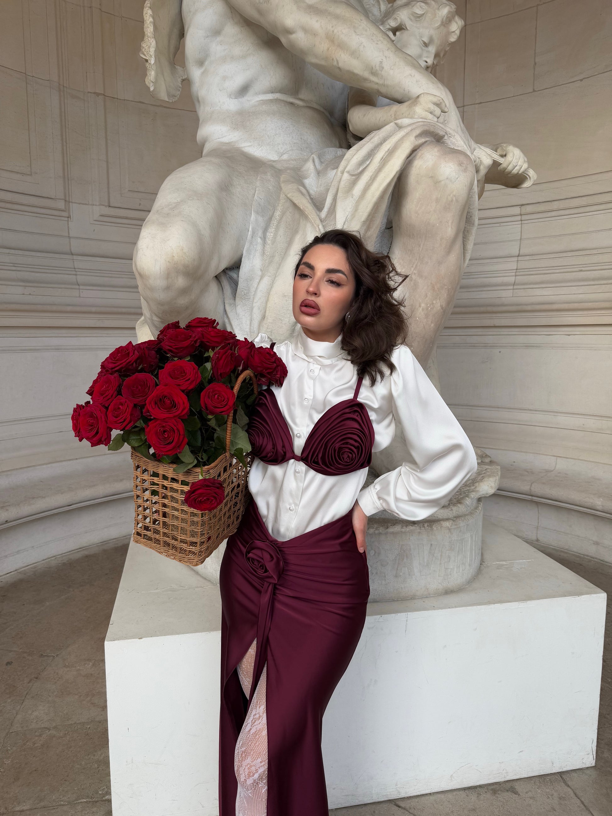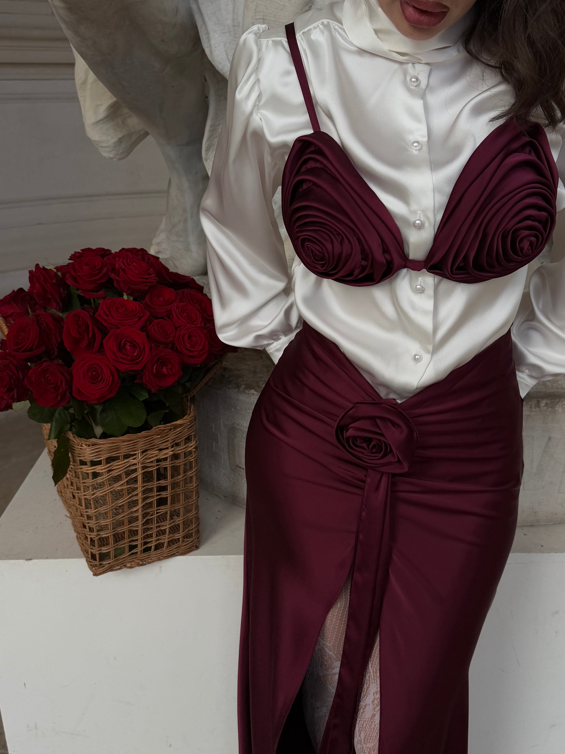 The highlight of this set is a decorative rose, blooming on the body, creating exquisite volume and a captivating silhouette.