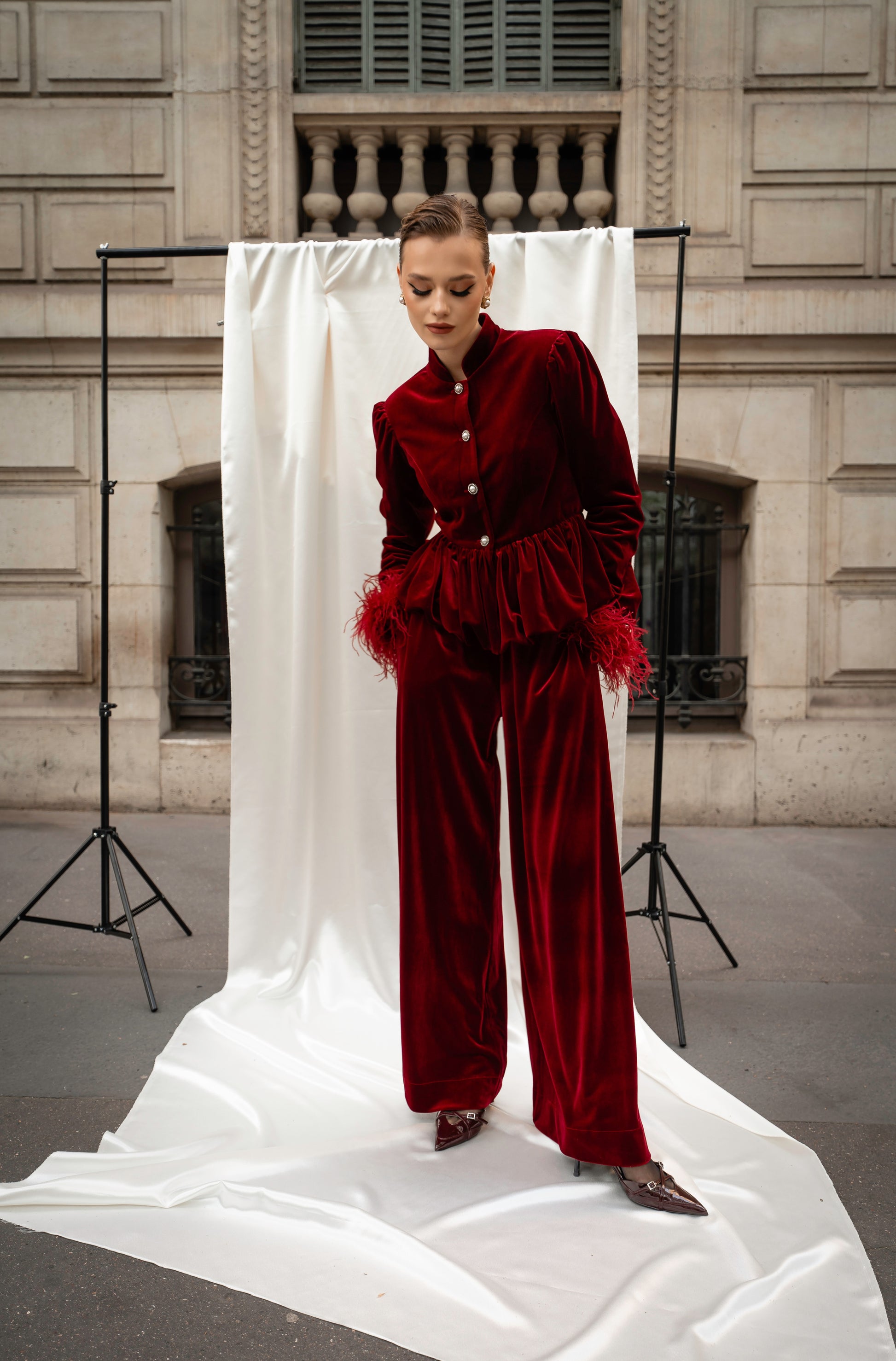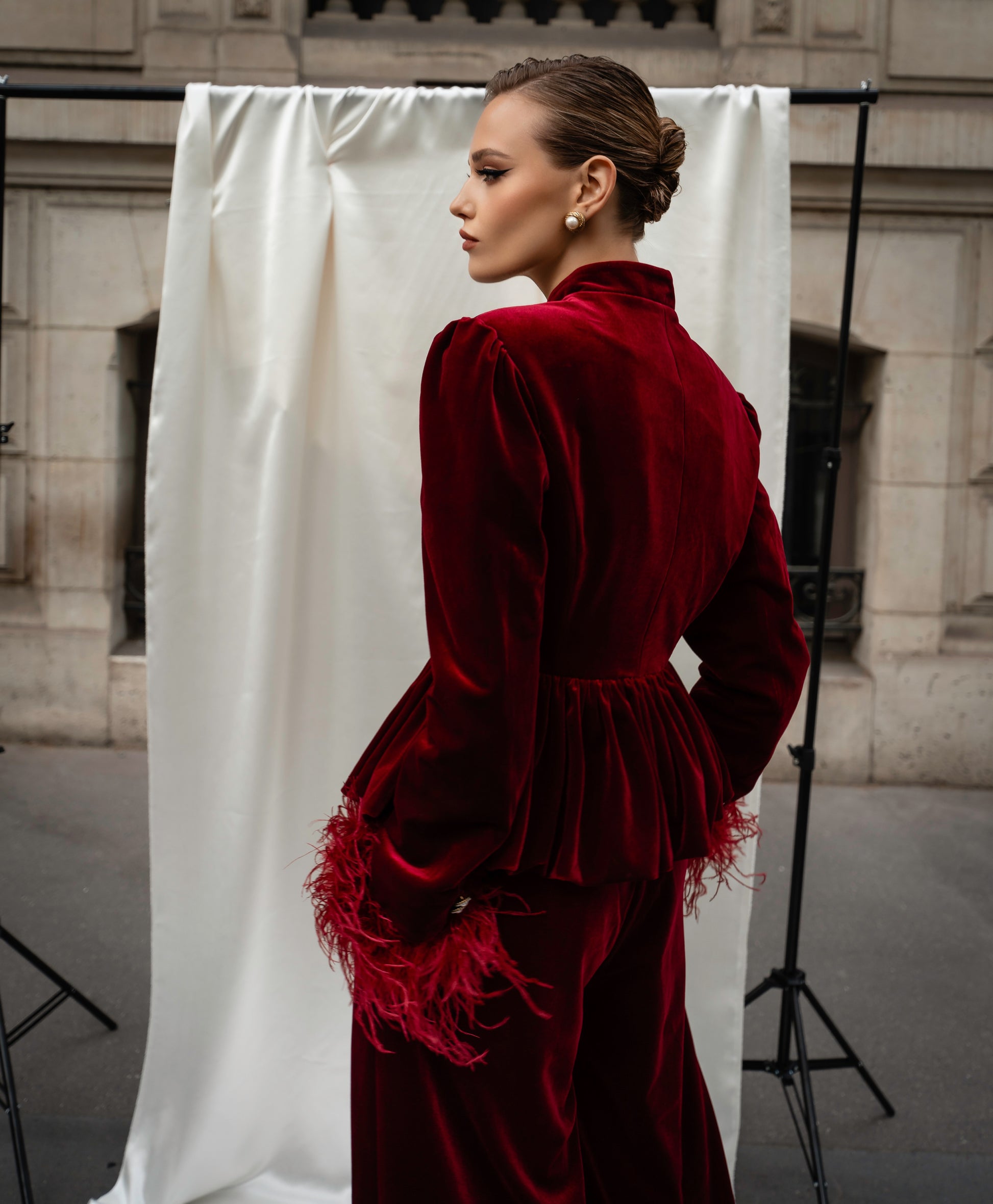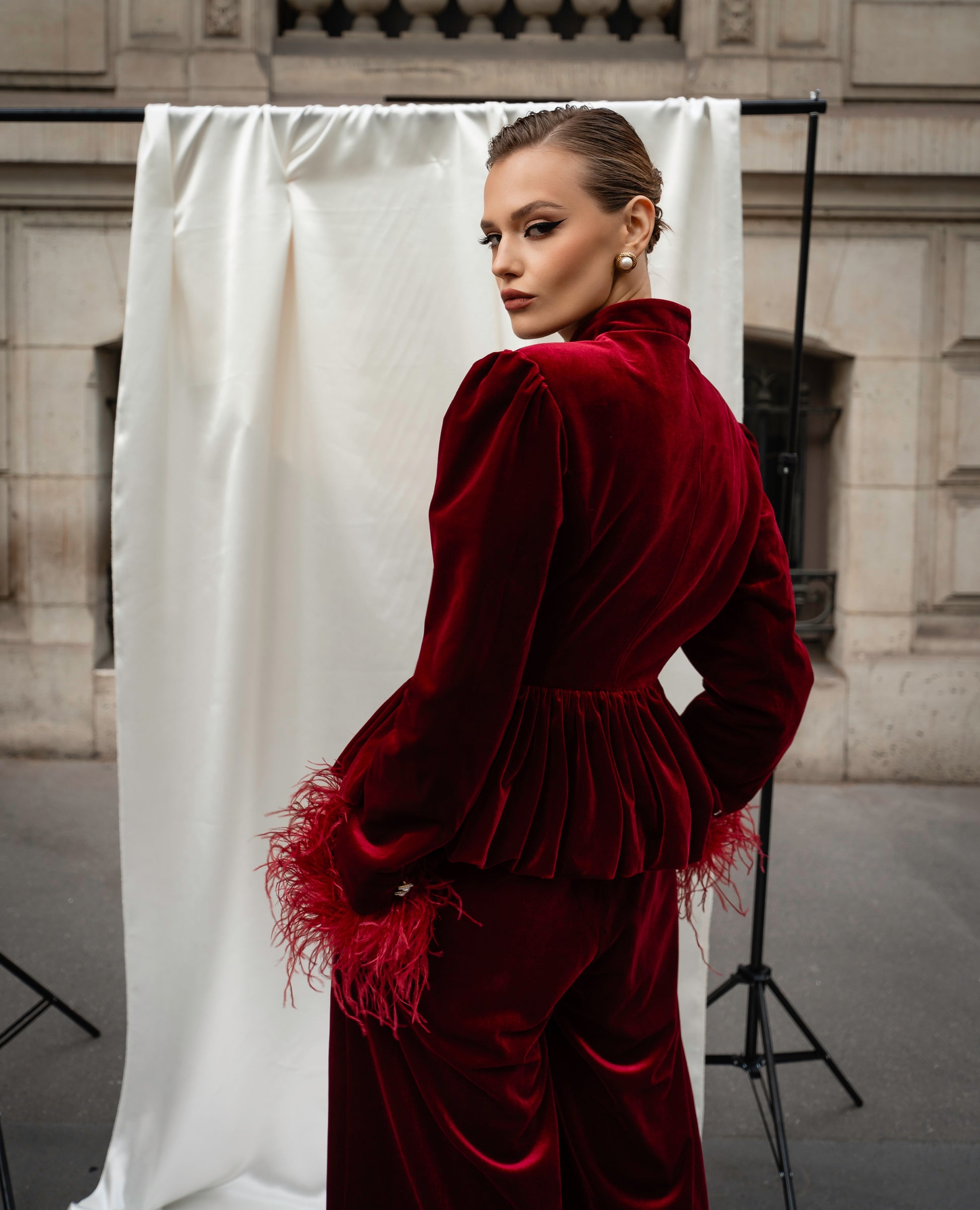 Elegance, architecture, sophisticated chic - “L’impératrice” velvet suit is designed for those who appreciate classics with modern accents.