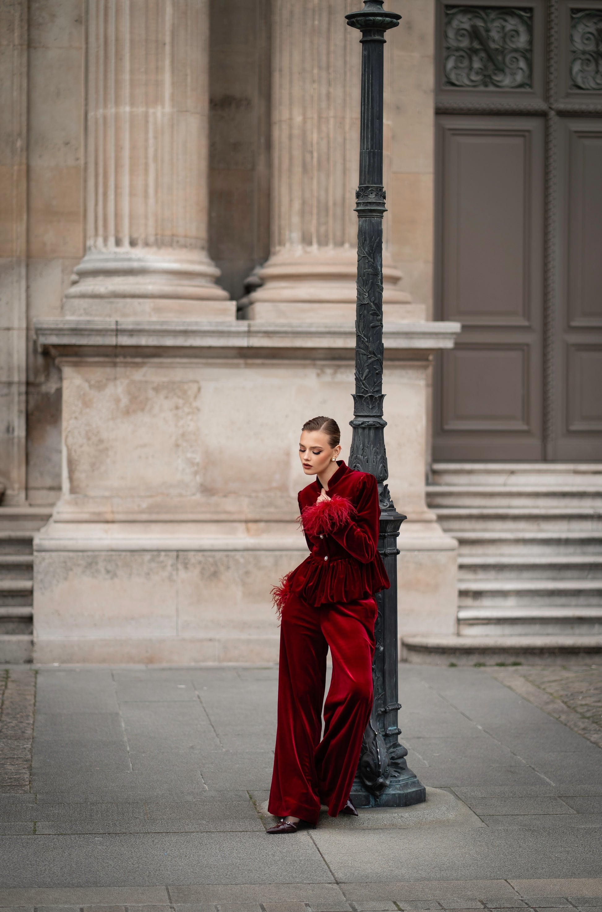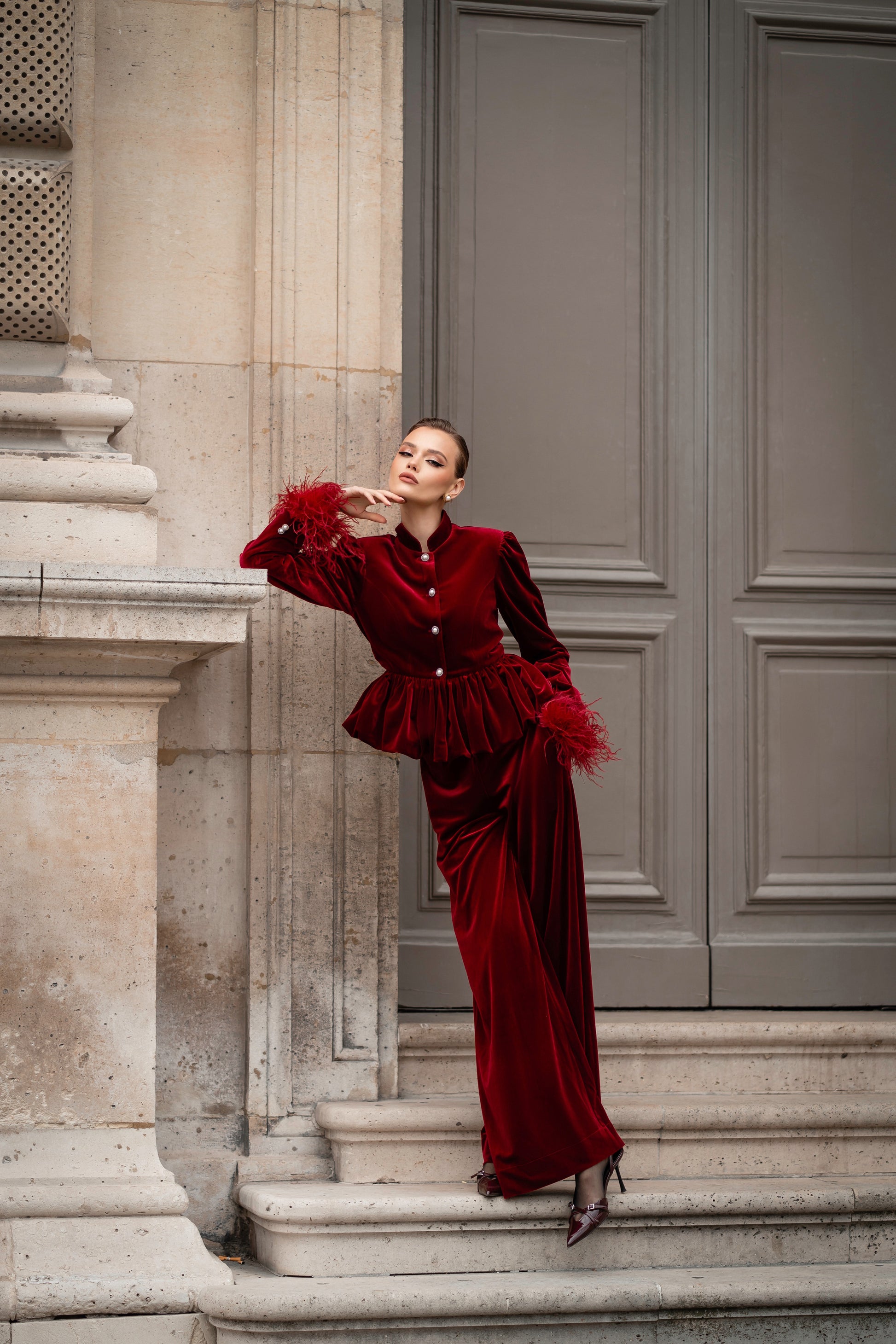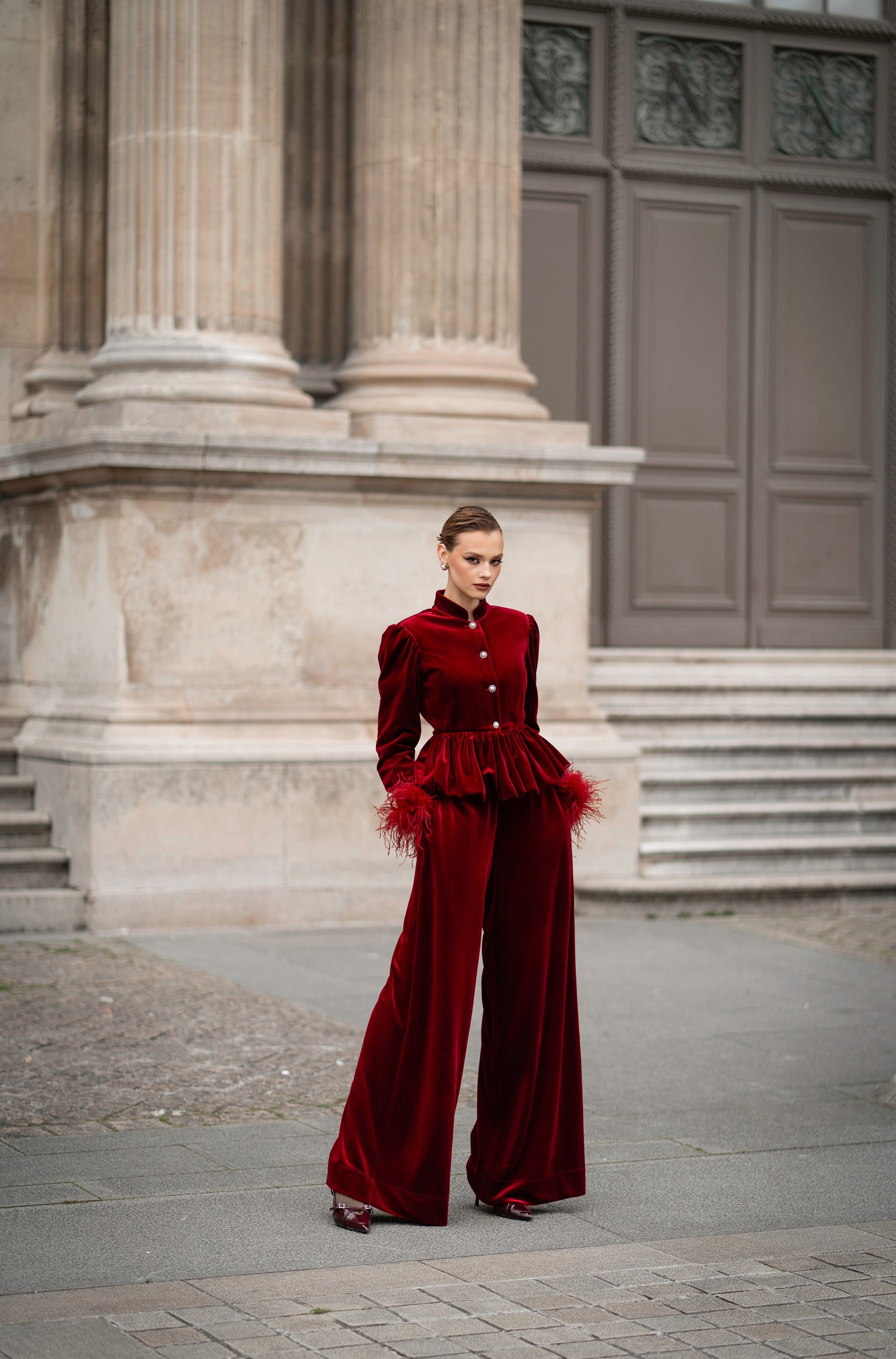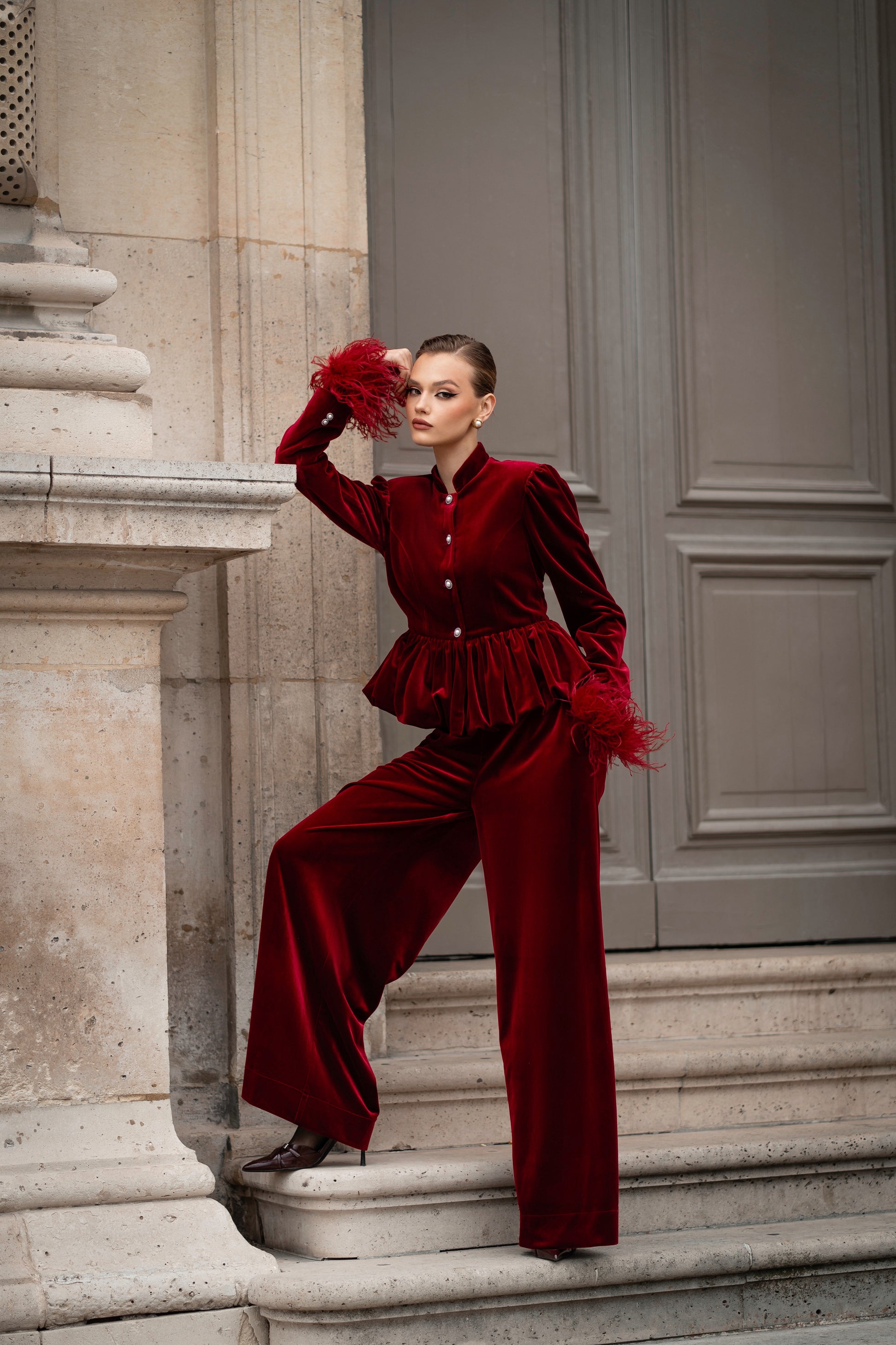 Elegance, architecture, sophisticated chic - “L’impératrice” velvet suit is designed for those who appreciate classics with modern accents.
